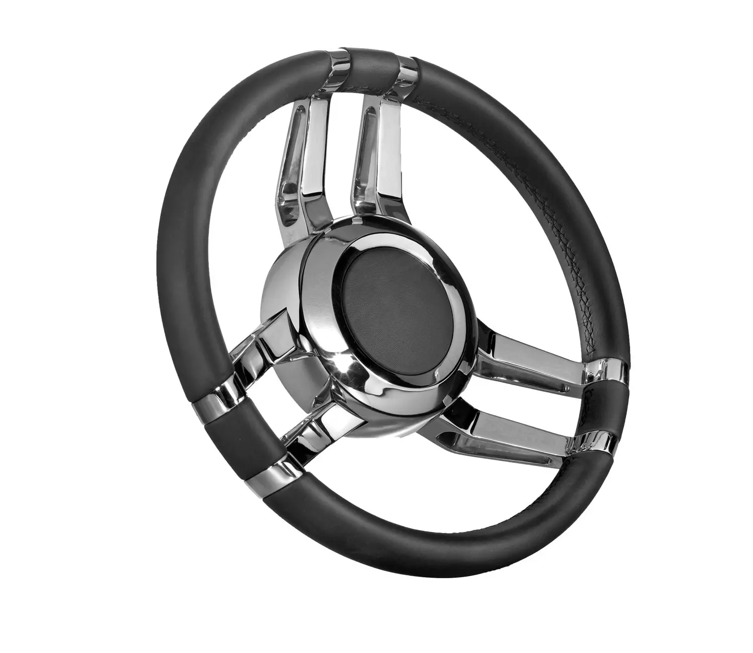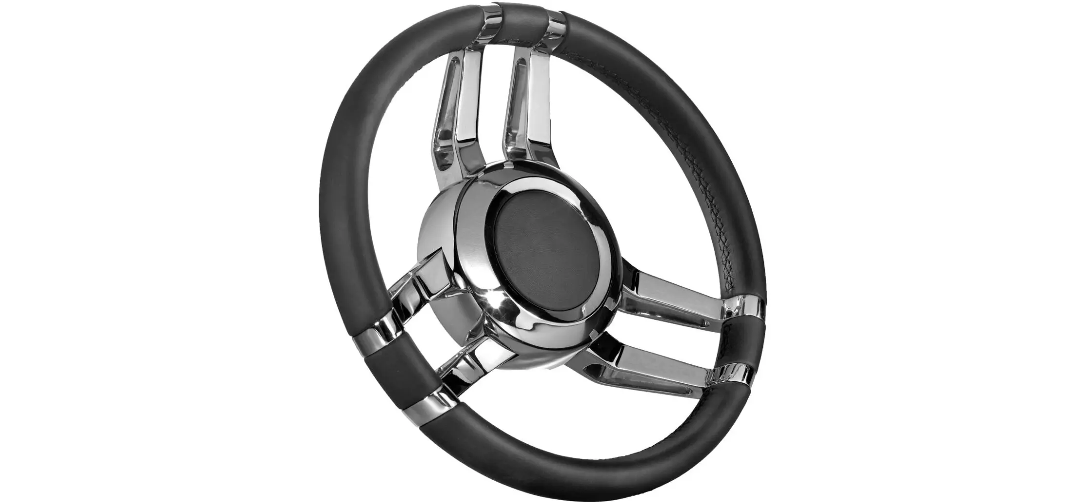 Carlotta från Italienska Isotta i svart läder, en ratt i robust och stilfullt utförande med diameter på 350 mm.