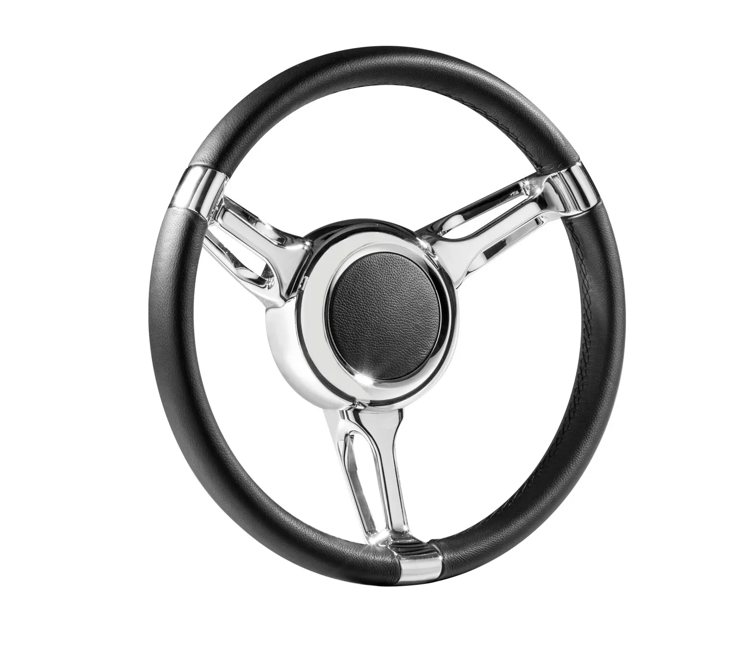 Diama från Italienska Isotta i svart läder, en ratt i elegant utförande med diameter på 350 mm.