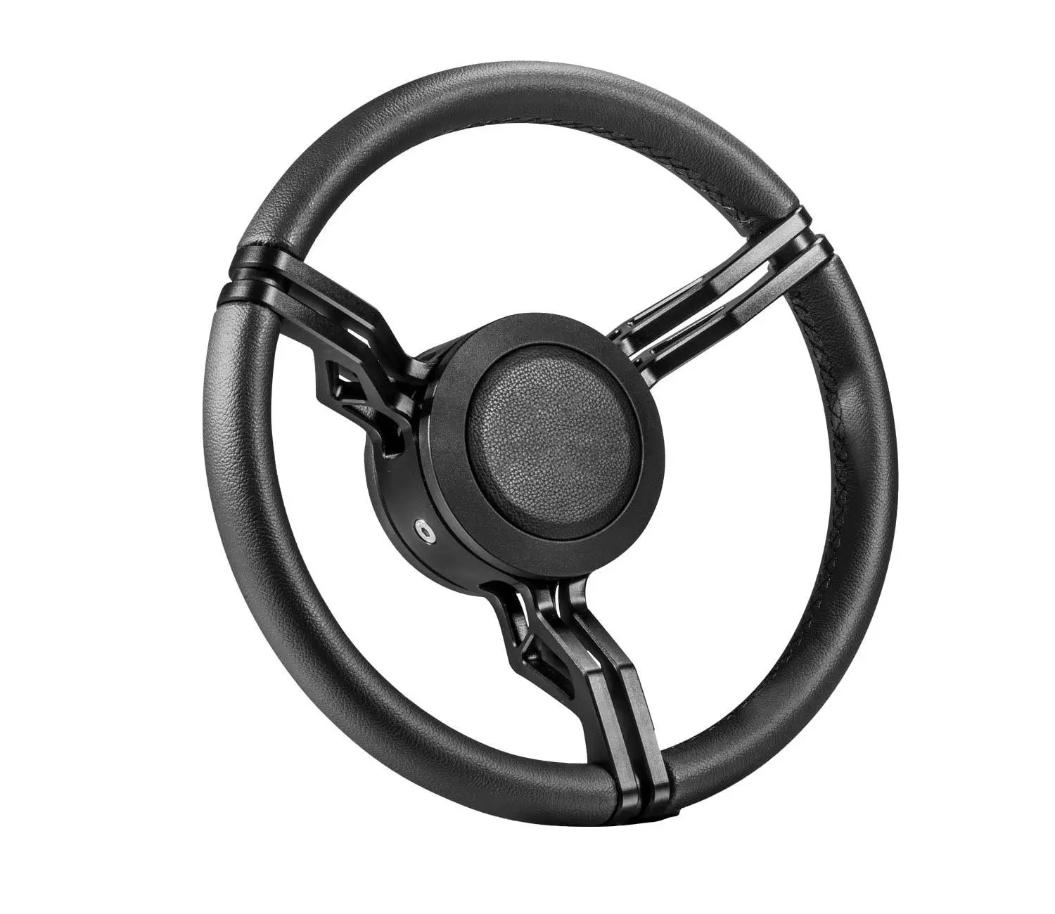 Fanete från Italienska Isotta i svart läder, en ratt i sportigt utförande med diameter på 350 mm.