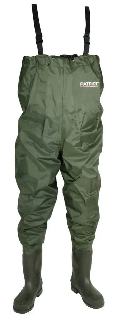 Patriot Vadarbyxor, Gröna vattentäta vadare för all slags fiske. Passar också till de som skall bygga en brygga. Tillverkade i hållbar 70 denierin Nylon/PVC .